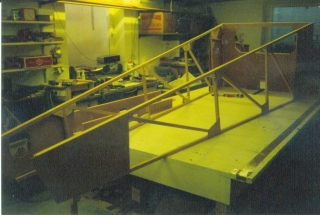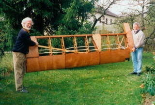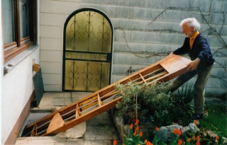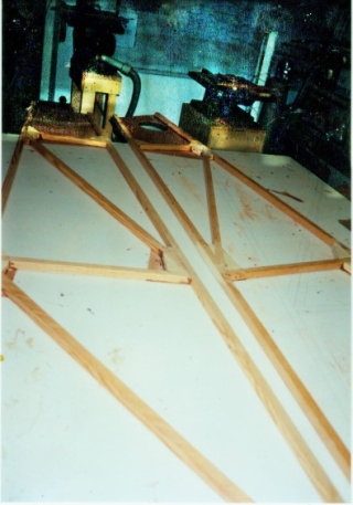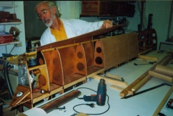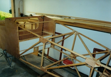 Seine Bauweise ist Holz und Tuchbespannung. Holzbearbeitung traute ich