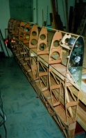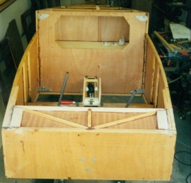 Durchreiche zum Gepäckfach ist noch nicht ausgeschnitten. Hier liegt das Gerippe der beiden Seitenteile. >>> |